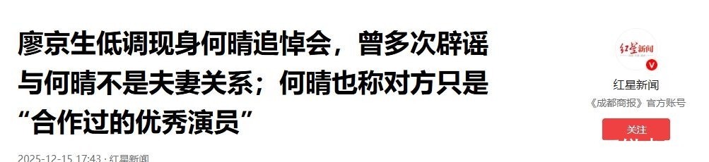 即便在何晴去世后,仍有大量网友在廖京生社交账号下留言:“节哀,保重身体,你们夫妻情深。”