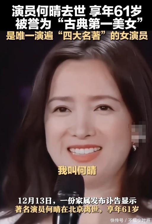 近日,唯一一位完整出演过四大名著改编影视剧的女演员何晴离世,终岁。