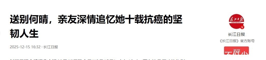 12日,何晴家属通过官方渠道正式发布讣告,确认她因病医治无效去世。