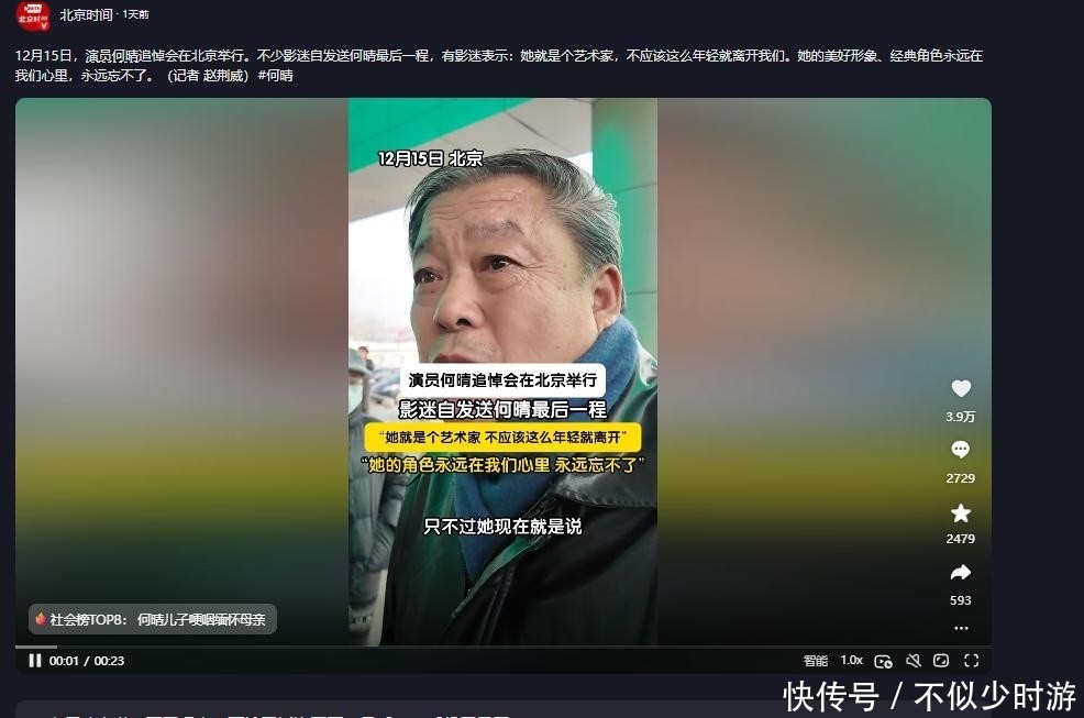 消息一经传出,“何晴去世”“首位演遍四大名著的女演员”等相关话题迅速冲上社交平台热搜榜前列。